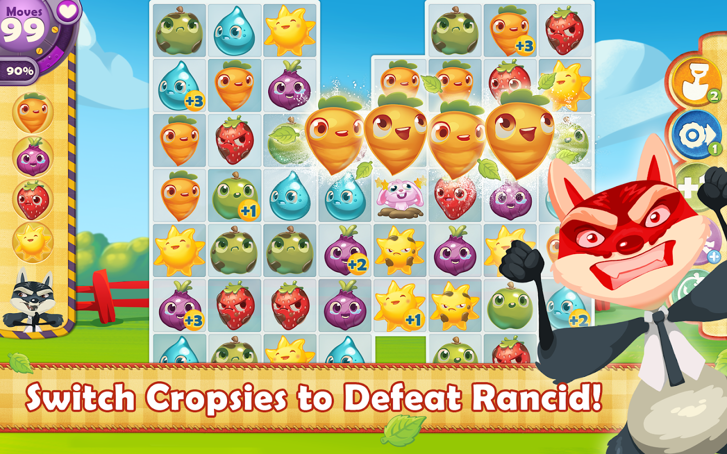 - Gather all kinds of cropsies to win the level before you run out of moves.